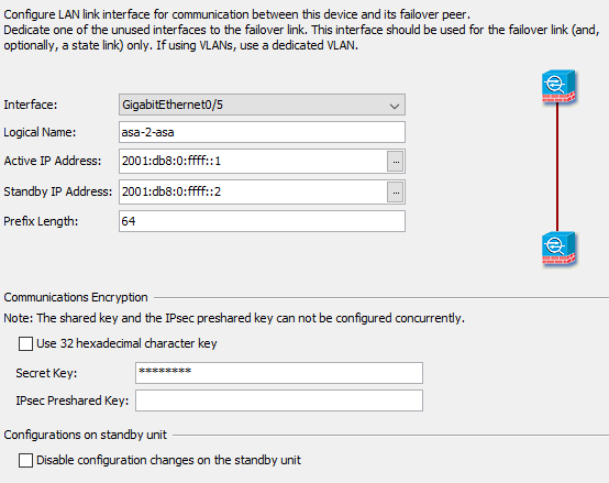 failover lan interface asa-2-asa GigabitEthernet0/5