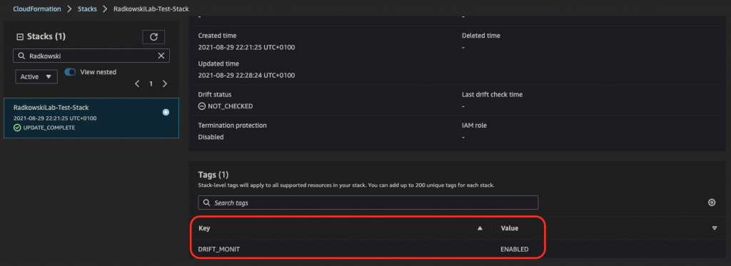 5.Check test CloudFormation stack tags
